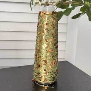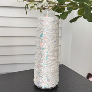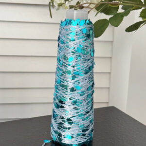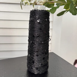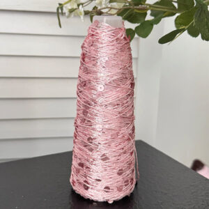 Pure cotton sequin yarn pairs well with body-hugging knits for headbands, straps, hats, sweaters, and more.